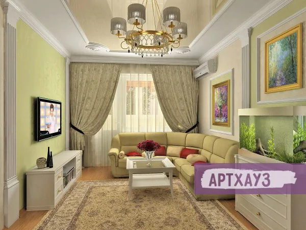 На визуализацию мы можем нанести размеры от края стены до различных элементов изображения, отметить некоторые элементы (кондиционер, выключатели, розетки), добавить планируемую мебель.