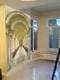 Для монтажа во влажном помещении подходит фреска Флорентина или фреска на Декоративной эластичной штукатурке, а также изделия из стеклянной мозаики или фотоплитки. При этом фреска Флорентина не допускает прямое попадание воды.